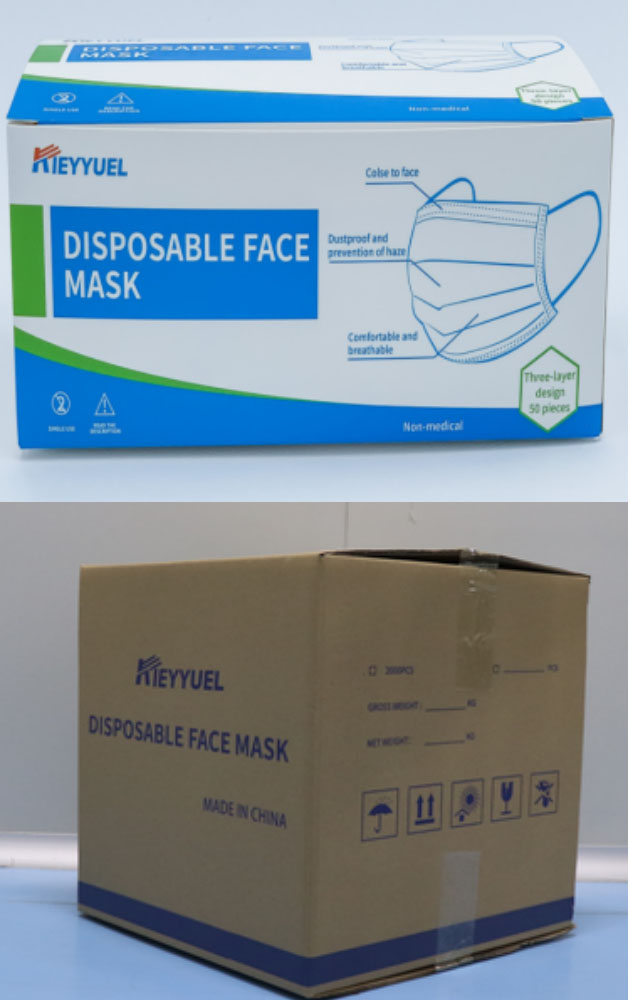 Wegwerp gesichtsmasker IS COMPOSED OF TWO LAYERS OF FIBER NONWOVEN FABRIC FOR MEDICAL ANDHEALTH CARE, WITH ONE LAYER ADDED IN THE MIDDLE MORE THAN 99% OF THEFILTER MELT BLOWN CLOTH IS WELDED BY ULTRASONIC WAVE。
